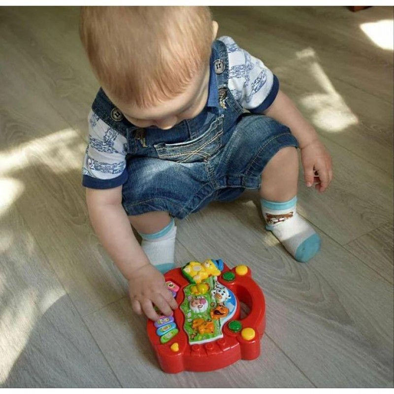 There many modes, includes animal sounds cognition, number cognition, graphic cognition, short stories, and some simple questions and answers. Also have multiple songs when press the piano keys.