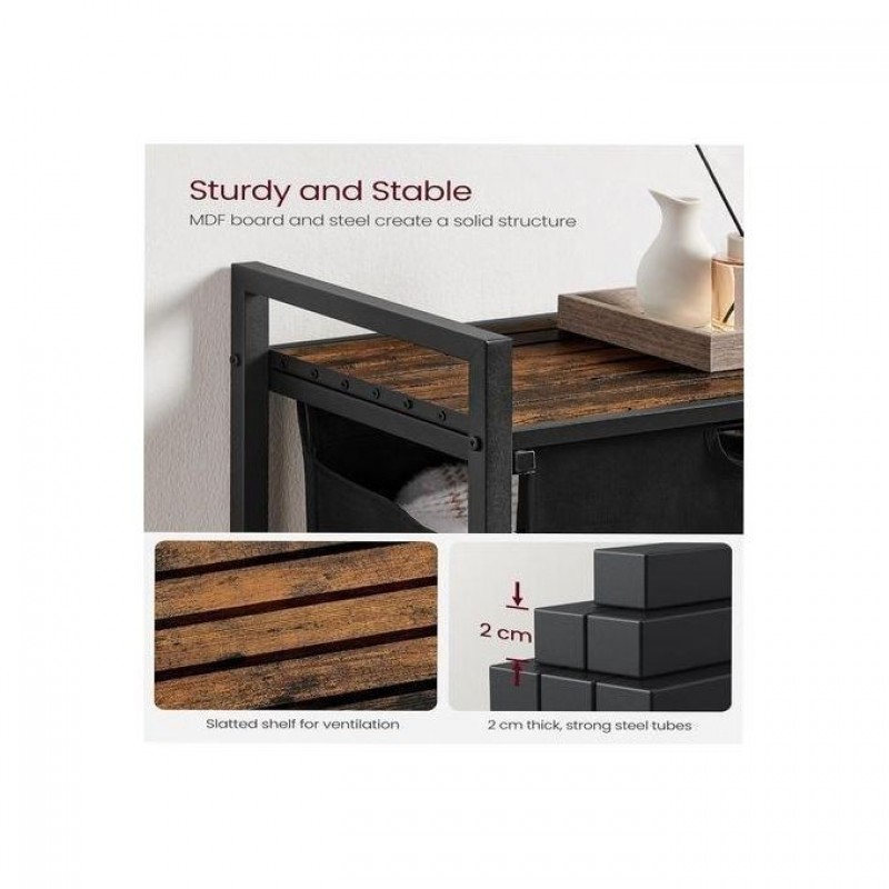 Equipped with a Slatted Storage Shelf, this laundry hamper offers additional space to organize detergents or toiletries. The shelf's innovative slatted design promotes excellent ventilation, preventing unpleasant odors from accumulating around your laundry.